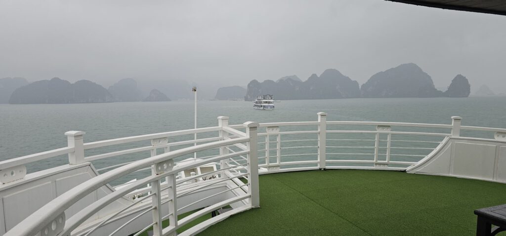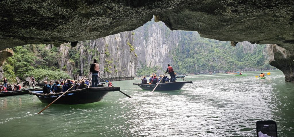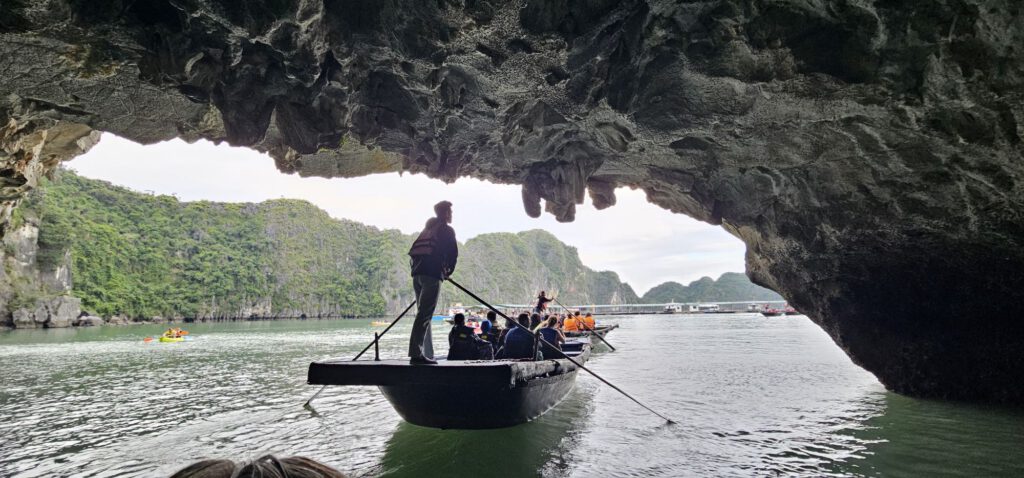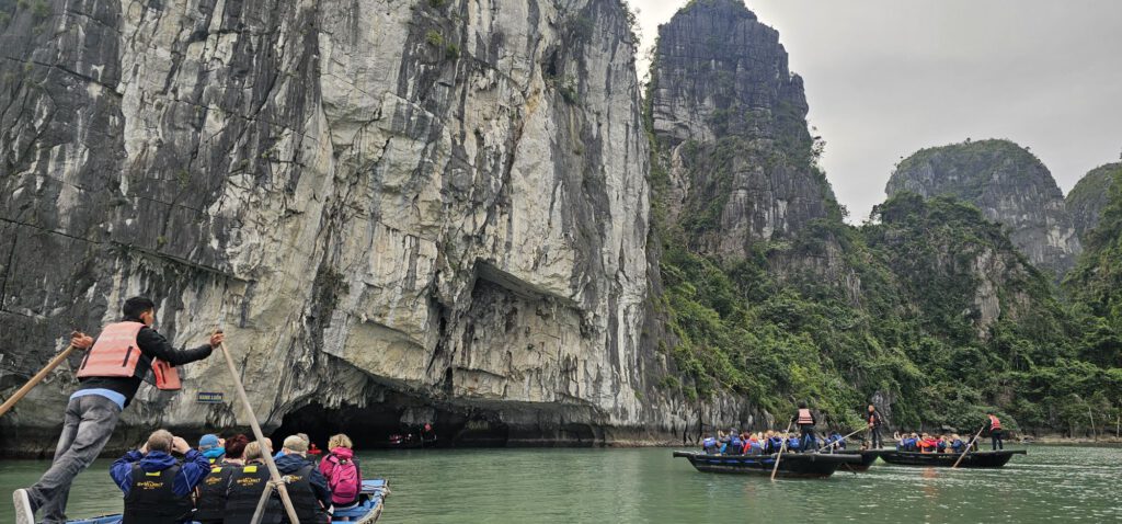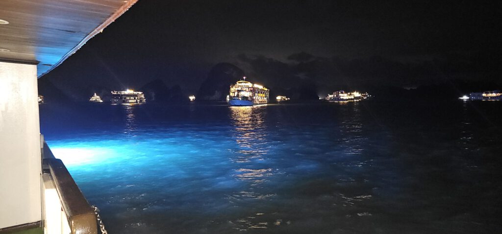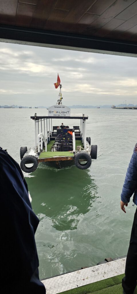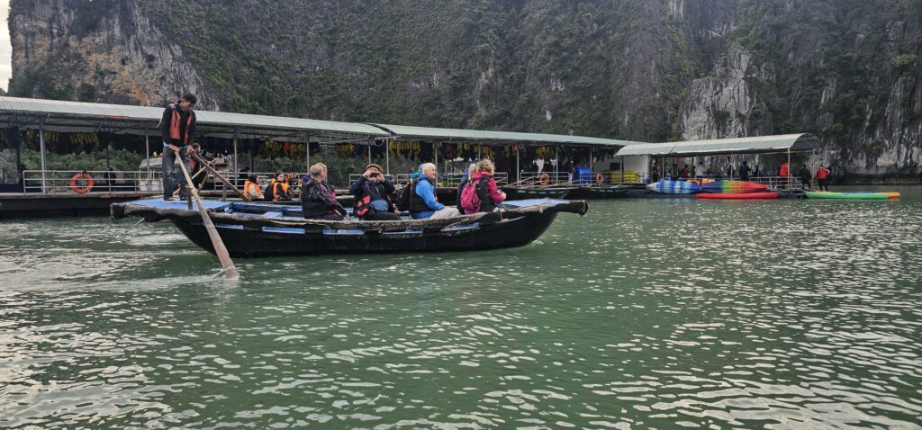 Mit Tenderbooten werden wir zu „unserer“ Dschunke gebracht. Wir sind nur 26 Personen, das ist eine angenehm kleine Reisegruppe, die schnell zusammenwächst.