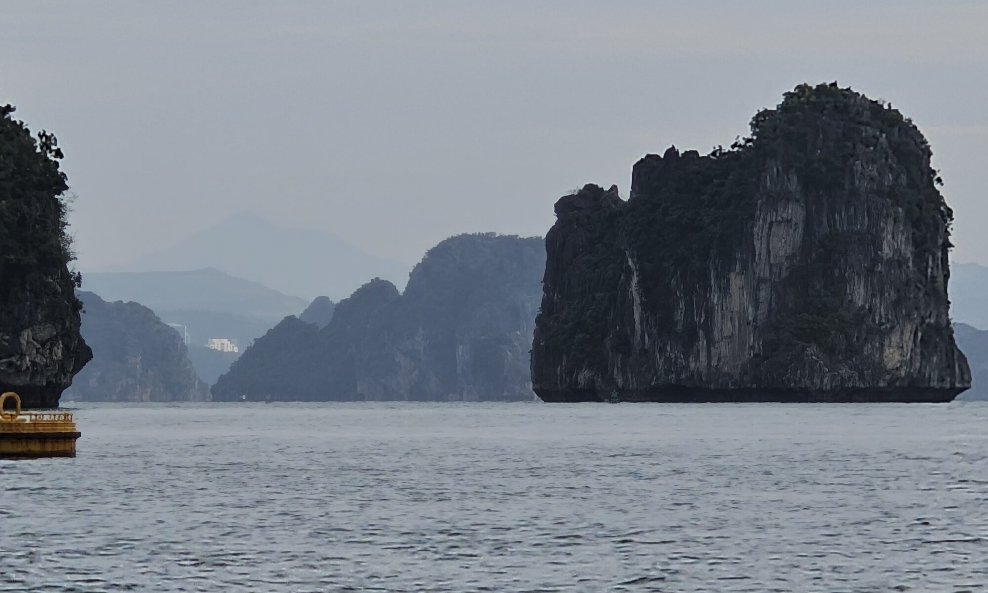 Die Halong-Bucht ist ein rund 1500 km² großes Gebiet im Norden Vietnams. Nach offiziellen Angaben ragen 1969 Kalkfelsen, zumeist unbewohnte Inseln und Felsen, zum Teil mehrere hundert Meter hoch aus dem Wasser.