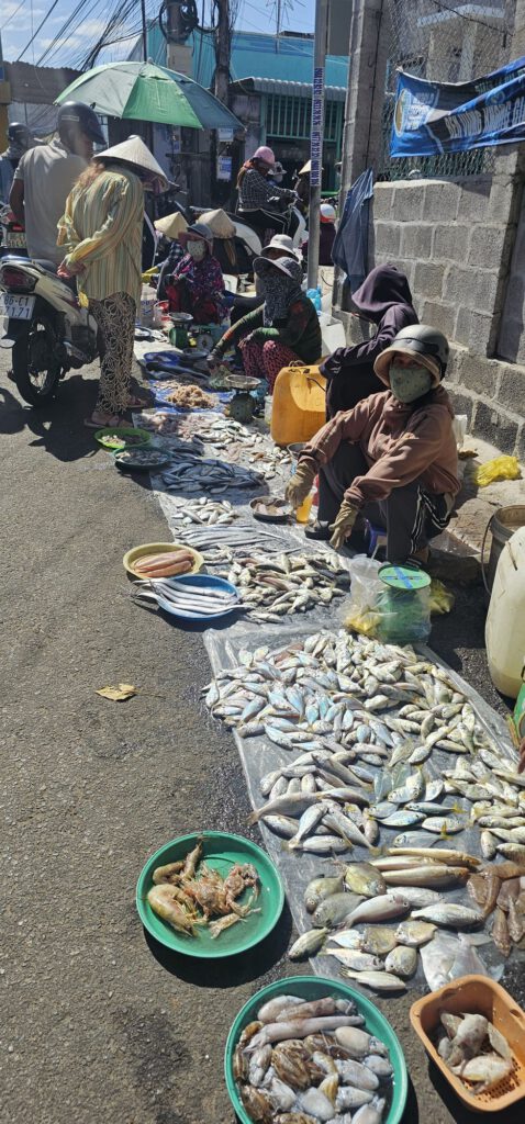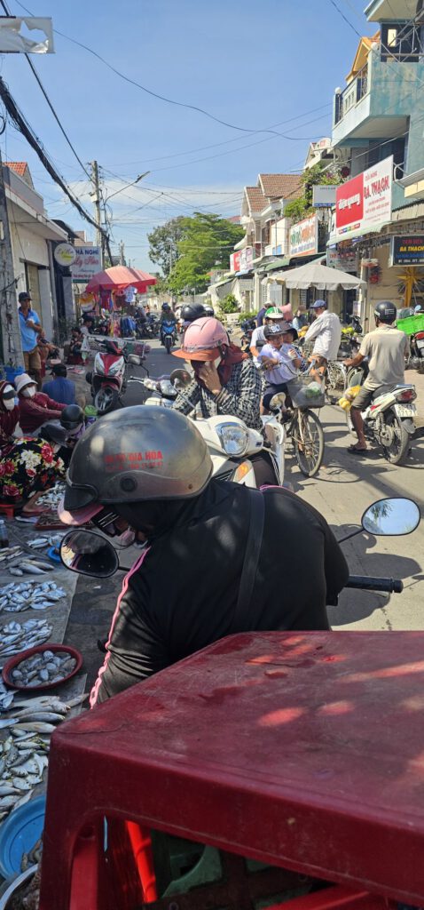 Heute geht es mit dem Shuttlebus in das 9 km entfernte Phan Thiet. Erstaunlicherweise gibt es zumindest in dem Altstadtbereich, in dem wir uns umgeschaut haben, absolut keine Einrichtungen für Touristen (Restaurants, Cafés, Geschäfte wie in den großen Hauptstädten). Also eine gute Chance, Fotos vom ECHTEN Vietnam zu machen.