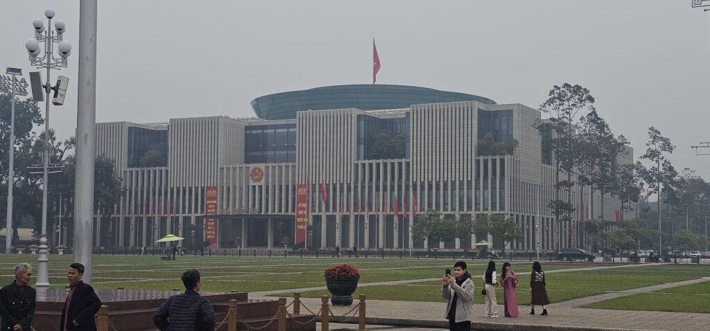 Das neue Gebäude der Nationalversammlung gilt als das größte Bauprojekt mit den komplexesten Bauelementen und -prozessen, das vietnamesische Bauunternehmen jemals durchgeführt haben.men seit seiner Einweihung war im Jahr 2014. Der Entwurf kam von deutschen Architekten. Es befindet sich genau gegenüber des Mausoleums.