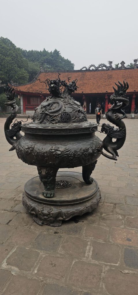 Ein konfuzianischer Tempel ist ein Ort der Weisheit, eine Idee, die auf die Traditionen von Konfuzius mit seinen gelehrigen Schülern zurückgeht. Der Literaturtempel in Hanoi diente zwischen 1076 (!) und 1915 zur Unterweisung der Söhne der Aristokratie und der Mandarine.